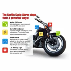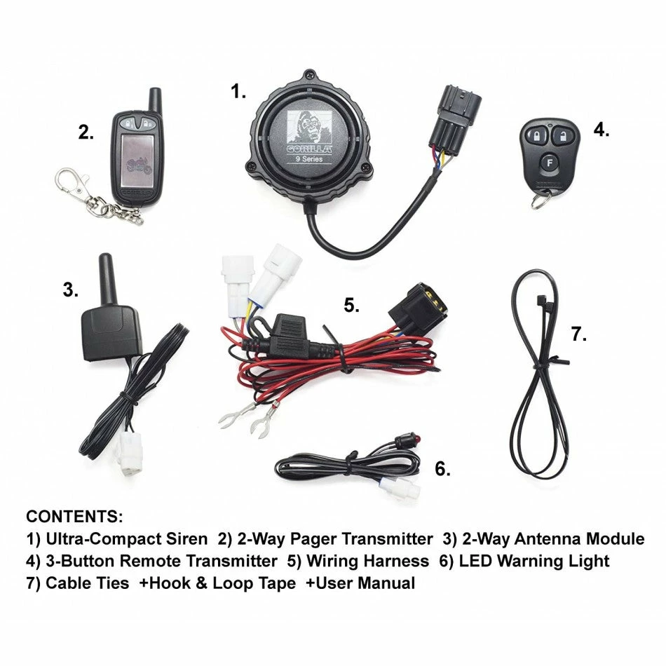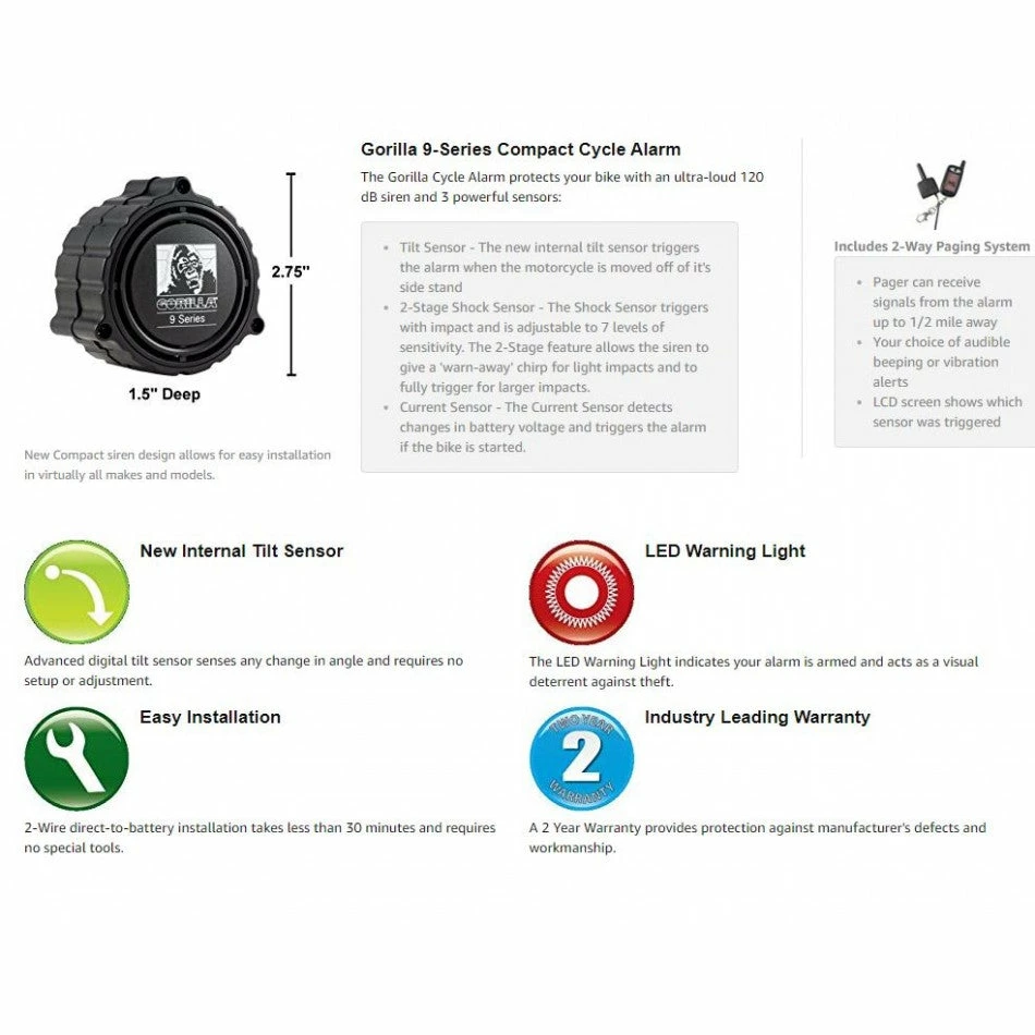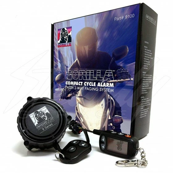Gorilla 9100 Compact Motorcycle alarm has been installed and used by us! It’s a really effective way to draw attention to your motorcycle in event that someone attempts to move it and it would also alert you through the 2-way paging remote! The 2-Way Pager receives signals from up to 1/2 mile away – alerting you if the alarm has been activated (3-button remote also included for spare). Three powerful sensors keep your bike safe: A new internal tilt sensor, an adjustable 2-stage shock sensor, and a voltage sensor. LED Warning Light indicates the alarm is armed and provides a visual deterrent against theft. Simple, direct-to-battery installation takes less than 30 minutes and requires no special tools! Universal fit!