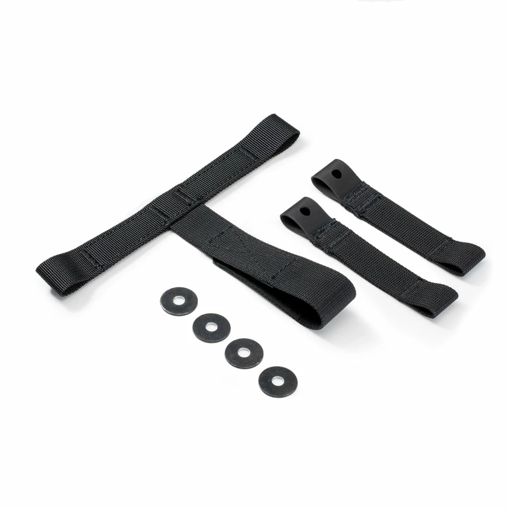 The kit consists of high quality hypalon & nylon webbing loops, that easily fit under the pillion seat using the existing mounting locations.Â